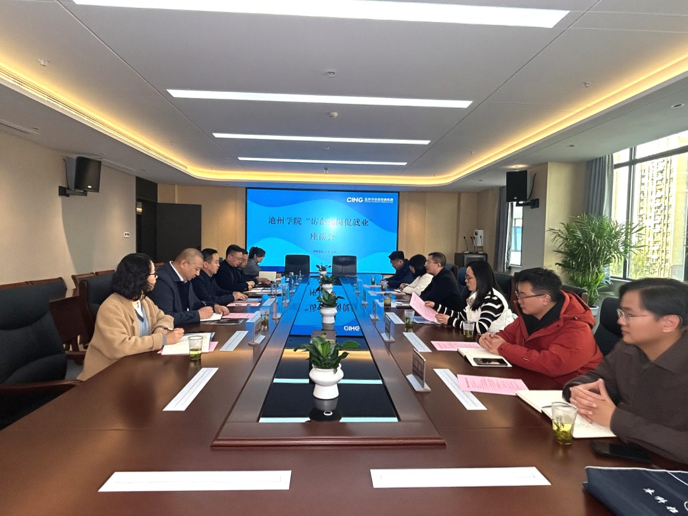 12月16日下午,池州学院地理与规划学院院长张乐勤一行赴集团开展“访企拓岗促就业”活动,集团党委委员、副董事长黄代热情接待并座谈交流。集团人力资源部及二级集团负责人、池州学院地理与规划学院各系主任参加座谈交流。